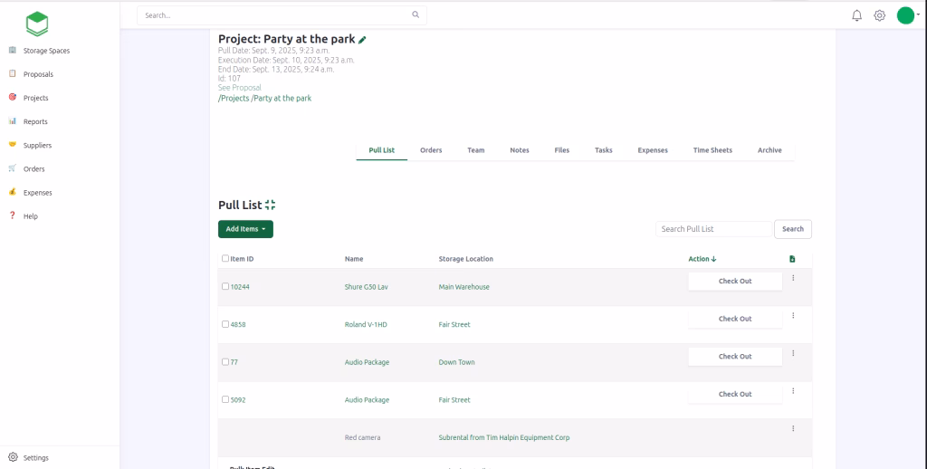 Find Boxes Projects is a project management tool. You can track the major parts of your AV project: team communication, orders for the project, and inventory assigned to the project.